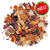 Hibiskusblüten, Rooibos, Apfelstücke, natürliches Aroma, Ingwerstücke, Orangenschalen(5%), Zimtstangen, weiße Hibiskusblüten, Nelken, Mandelflakes.